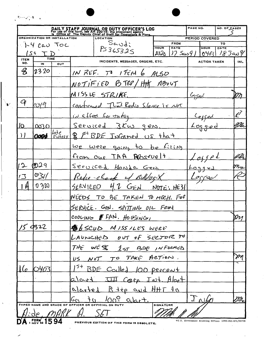 Document 14 f:/Week-27/BX001034/DAILY JOURNAL-STAFF JOURNAL AND TACTICAL OPERATIONS CENTER -TOC- LOGS DESERT STORM 17 JAN 91/daily staff journal:08099611154333