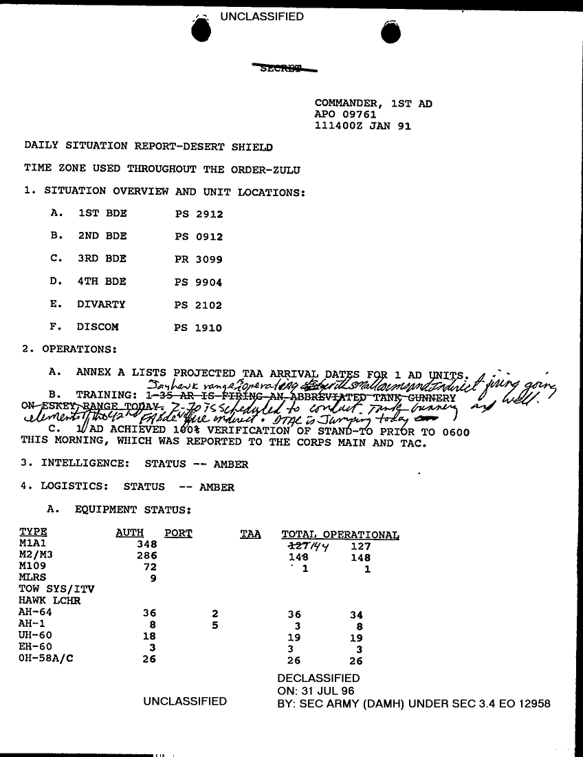 Subject = DAILY SITUATION REPORT