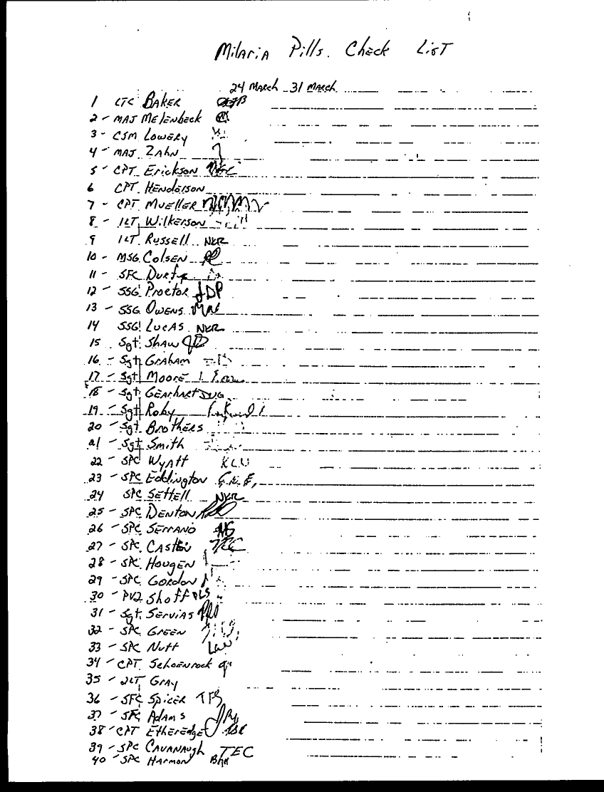 Document 2 f:/Week-27/BX001035/SPOT REPORTS 1 TO 31 MAR 91/malaria pills check list:08099611161465
