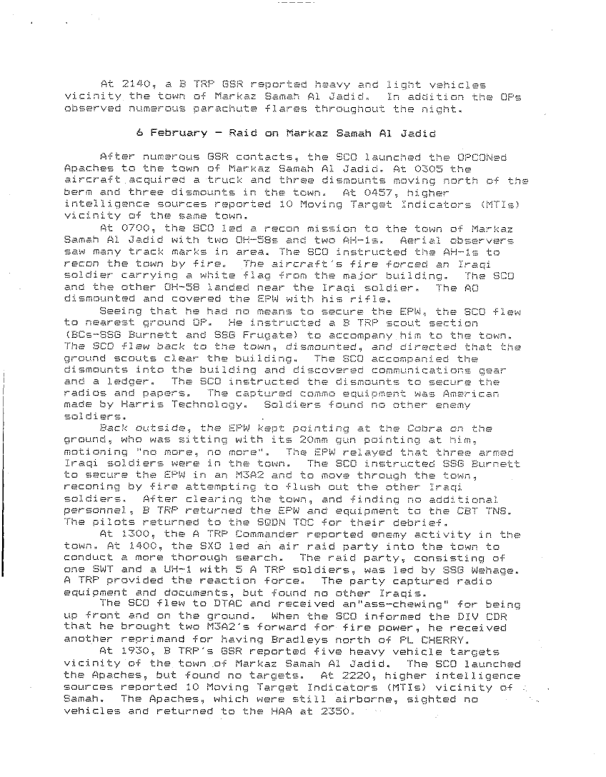 Document 10 f:/Week-27/BX001034/DAILY JOURNAL-STAFF JOURNAL AND TACTICAL OPERATIONS CENTER -TOC- LOGS DESERT STORM -1/1 4 caalry history for operation desert storm:08099611161566