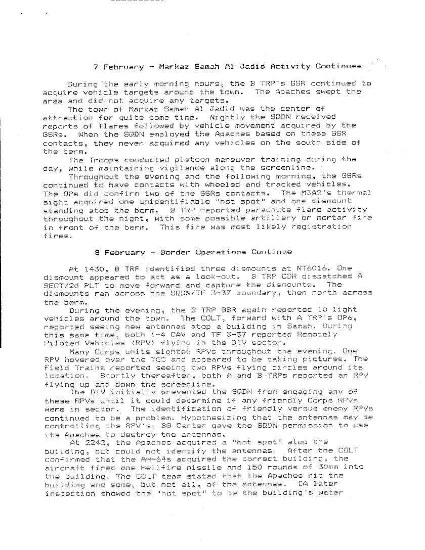 Document 10 f:/Week-27/BX001034/DAILY JOURNAL-STAFF JOURNAL AND TACTICAL OPERATIONS CENTER -TOC- LOGS DESERT STORM -1/1 4 caalry history for operation desert storm:08099611161566