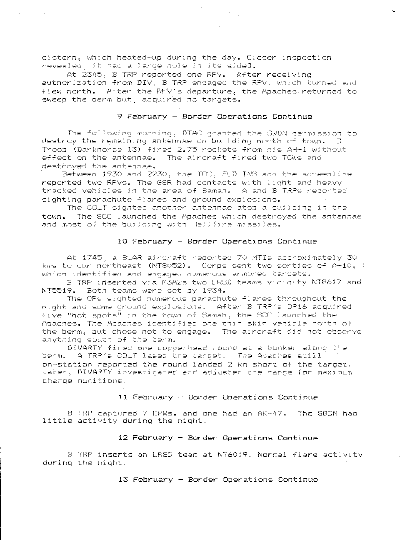 Document 10 f:/Week-27/BX001034/DAILY JOURNAL-STAFF JOURNAL AND TACTICAL OPERATIONS CENTER -TOC- LOGS DESERT STORM -1/1 4 caalry history for operation desert storm:08099611161566