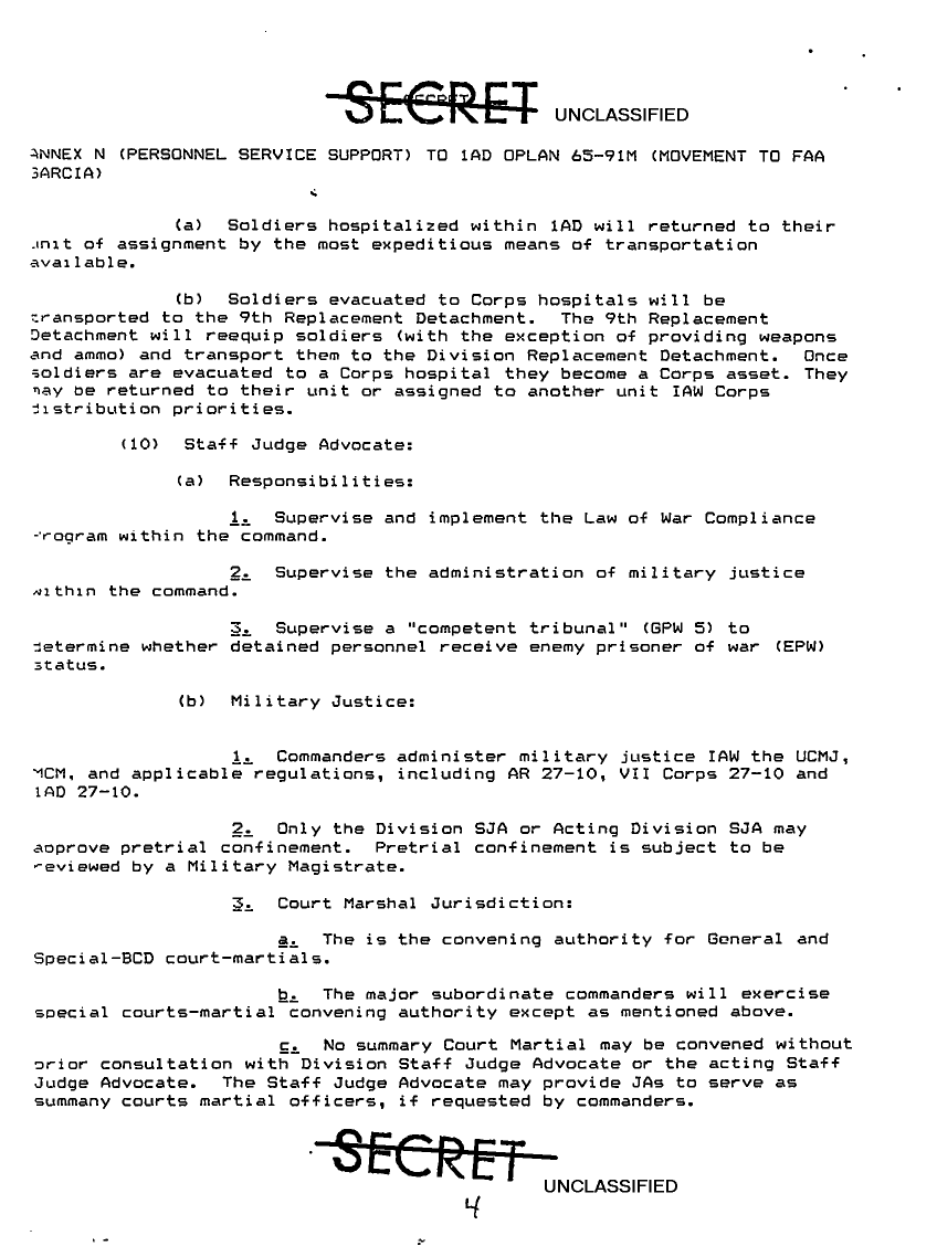 Subject = ANNEX N PERSONNEL SERVICE SUPPORT OPORD 65 91M