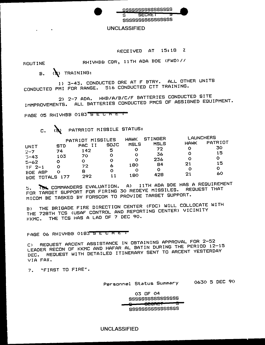 Document 11 f:/Week-29/BX000404/TACTICAL OPERATIONS CENTER LOGS - MSG FILE LOGS 6-7 DEC 90/11th ada bde sitrep 102:08169613341116