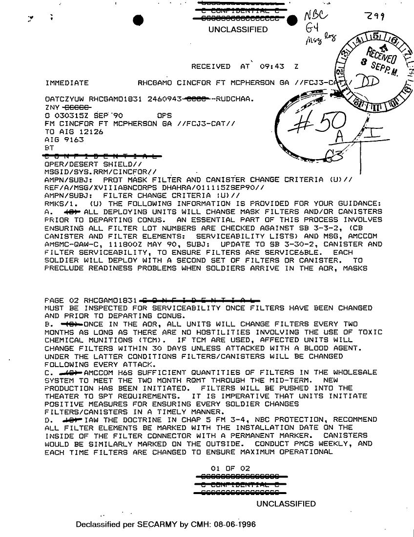 Document 2 f:/Week-29/BX000402/COMMAND REPORTS - MISC INCOMING ARCENT SITREPS 1-2 SEP 90/prot mask filter and canister change criteria:08169613341519