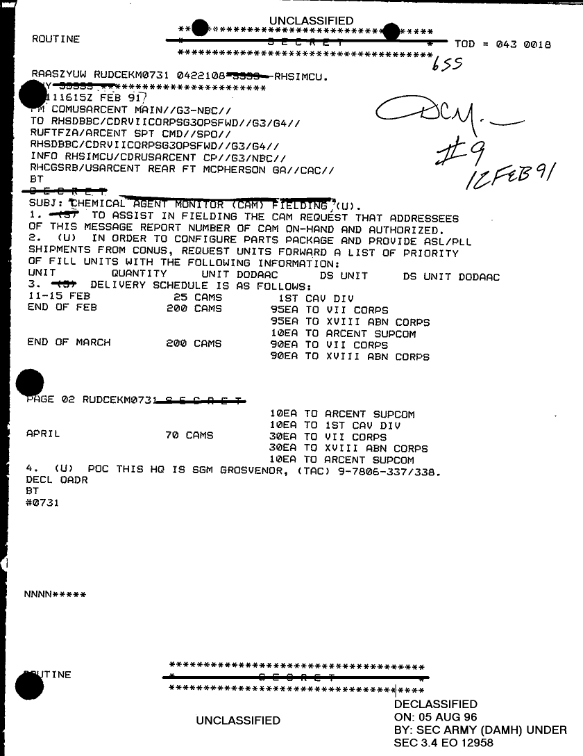 Document 1 f:/Week-28/BX000410/TACTICAL OPERATIONS CENTER LOGS - LUCKY TAC JOURNALS 11-14 FEB 91/chemical agent monitor fielding unit:08169613341721