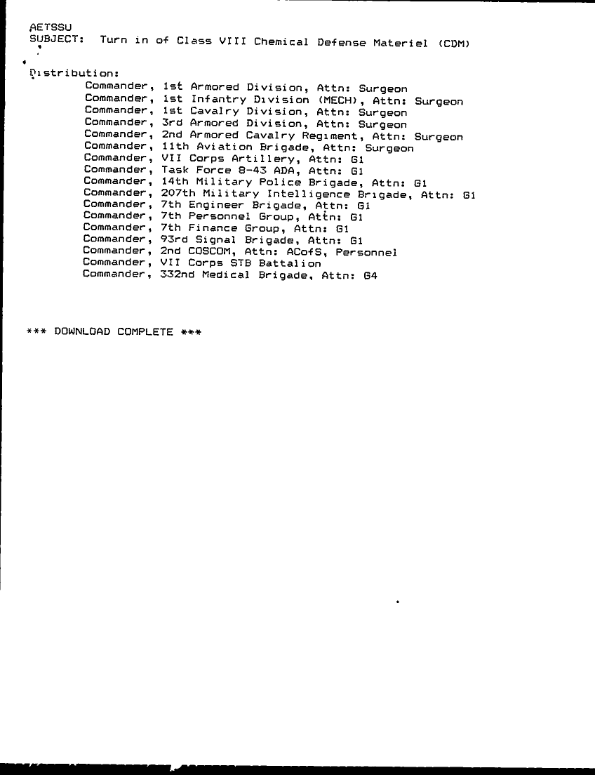 Subject = TURN IN OF CLASS VIII CHEMICAL DEFENSE MATERIEL