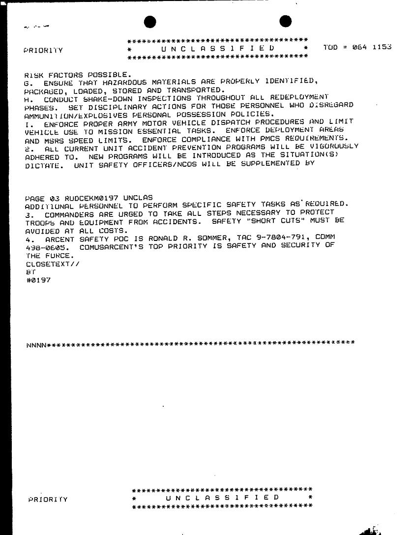 Document 4 f:/Week-29/BX000421/TACTICAL OPERATIONS CENTER LOGS - LUCKY TAC JOURNALS 1-7 MAR 91/arcent safety message redeployment:08169613342125