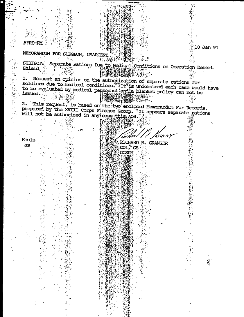 Document 7 f:/Week-29/BX000403/GEN FIN ADMIN CORRESPONDENCE FILE - OUTGOING FILE/separate rations due to medical conditions:08169613345550