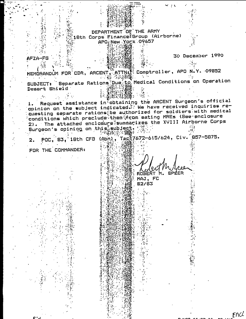 Document 7 f:/Week-29/BX000403/GEN FIN ADMIN CORRESPONDENCE FILE - OUTGOING FILE/separate rations due to medical conditions:08169613345550