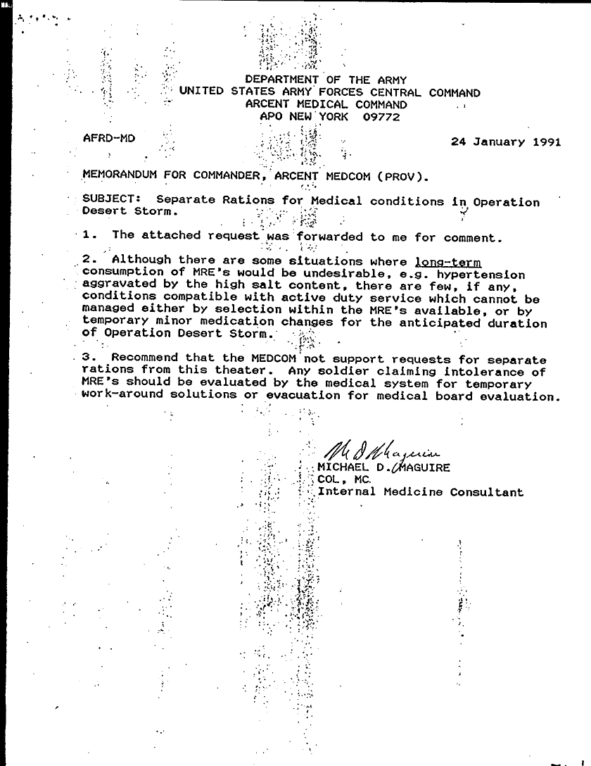 Document 7 f:/Week-29/BX000403/GEN FIN ADMIN CORRESPONDENCE FILE - OUTGOING FILE/separate rations due to medical conditions:08169613345550