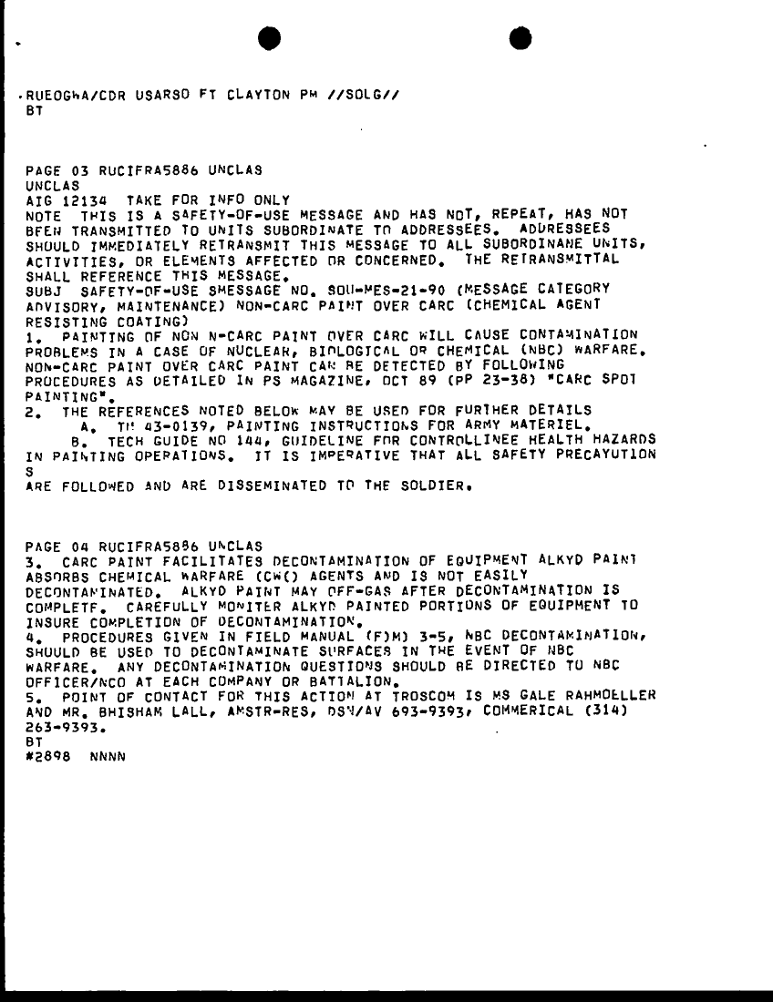 Document 2 f:/Week-29/BX000422/HISTORIANS BACKGROUND MATERIAL FILES - MISC MSG READING FILES 29 AUG 90/non carc paint over carc chemical agent resistin:0816961333576