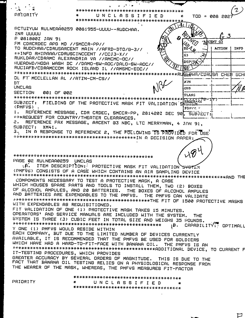 Document 5 f:/Week-29/BX000420/HISTORIANS BACKGROUND MATERIAL FILES - G3 NBC MIS 3 OF 3/fielding of the protective mask fit validation s:08169613354769