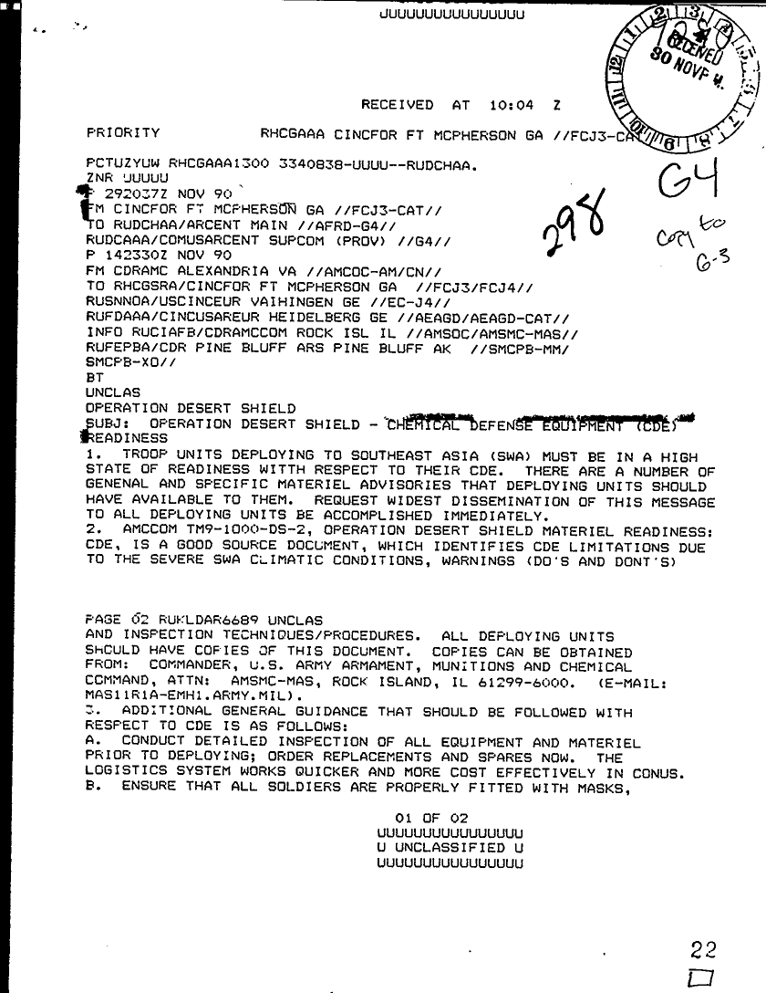 Subject = OPER DES SHIELD CHEMICAL DEFENSE EQUIPMENT READI