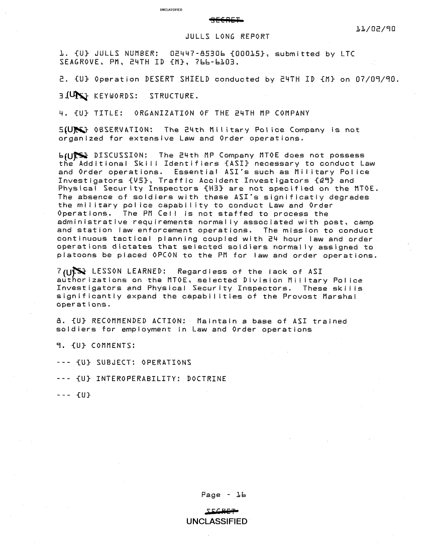 Subject = JULLS LONG REPORT 2 NOV 90