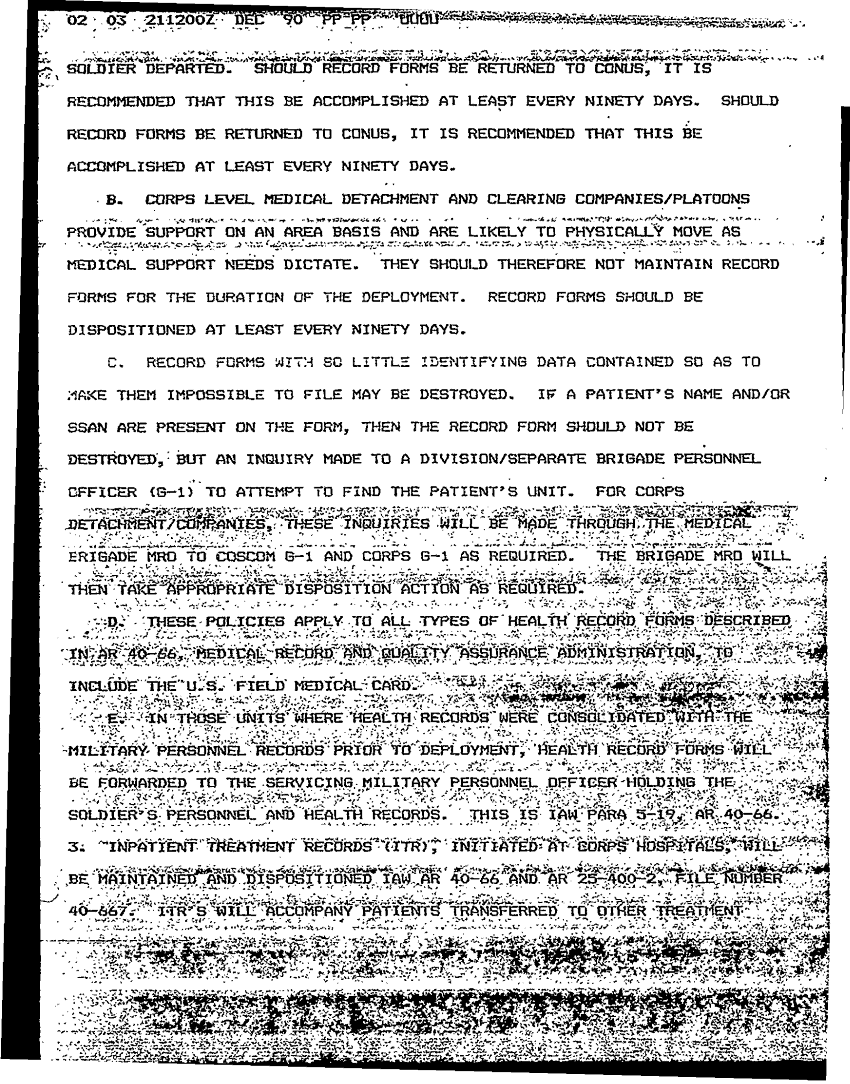 Document 3 f:/Week-16/BX000050/OUTGOING MESSAGES DEC 90/disposition of medical records and forms:08239614360729