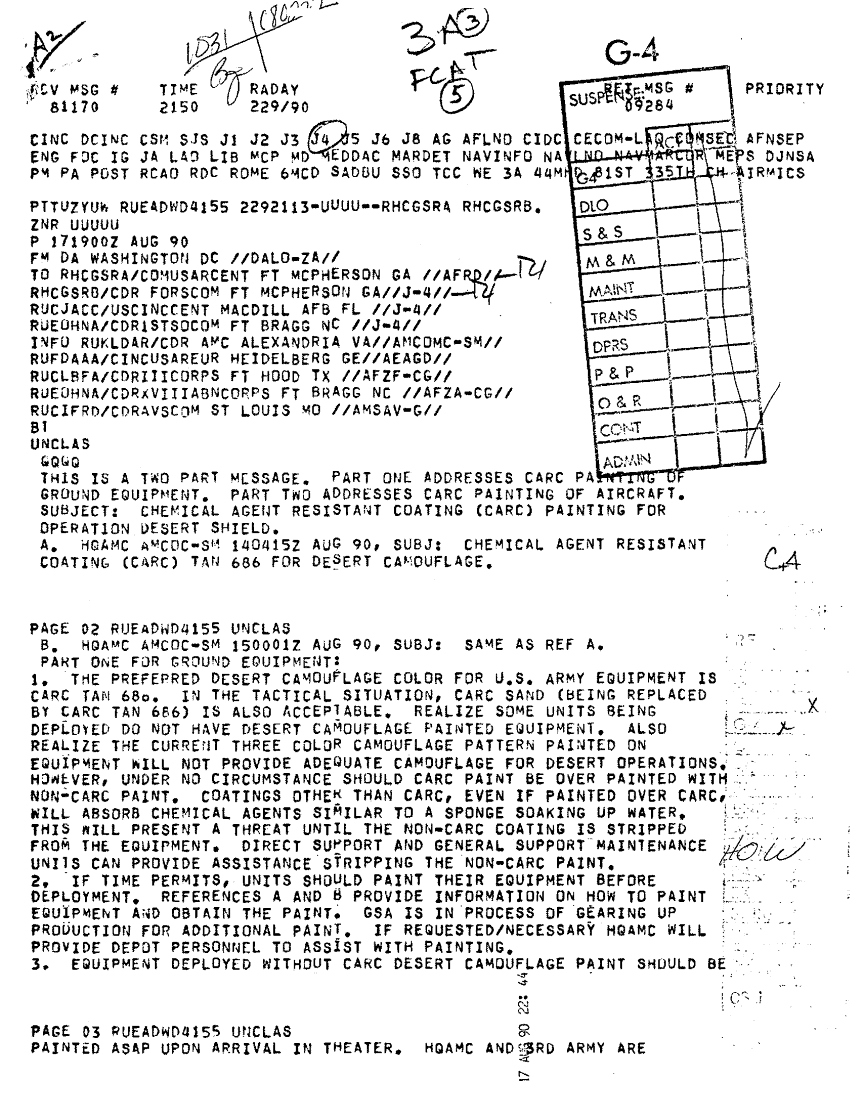 Subject = CHEMICAL AGENT RESISTANT COATING 17 AUG 90