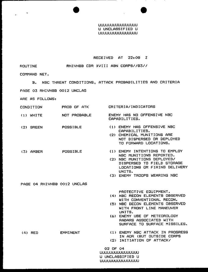 Document 4 f:/Week-30/BX000445/TOC LOGS - MSG FILE LOGS 2-3 NOV 90/xviii abn corps nbc threat warning sys inter chg:08239614371758