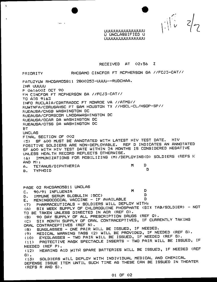 Document 6 f:/Week-29/BX000423/TACTICAL OPERATIONS CENTER LOGS - ARCENT MSG LOGS 7 OCT 90/disposition of health records 6 oct 90:08239614353910