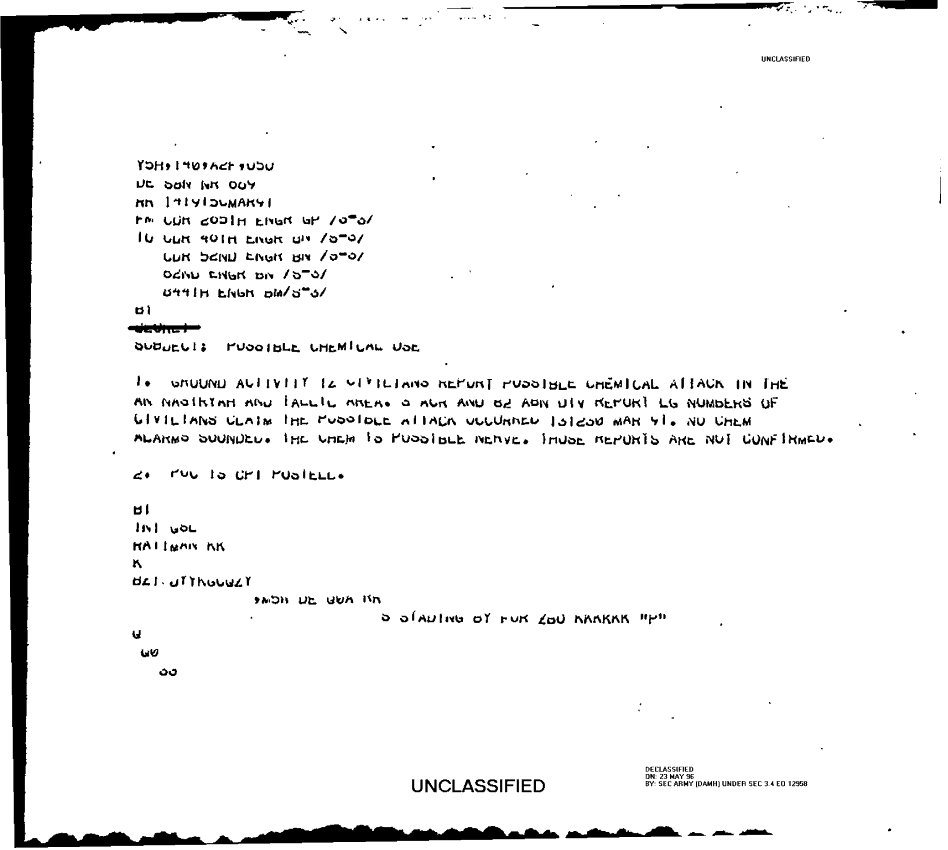 Subject = POSSIBLE CHEMICAL USE 14 MAR 91