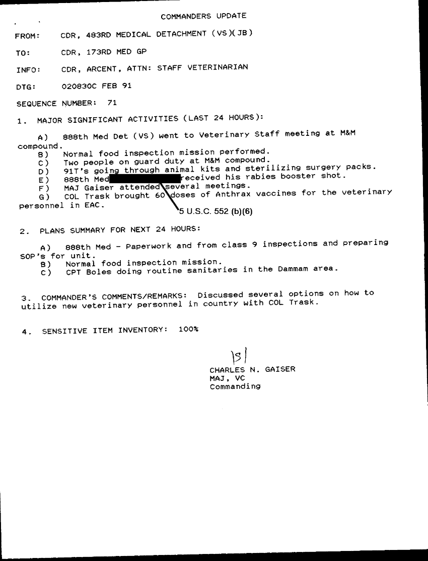 Subject = COMMANDERS UPDATE SEQ NO 71