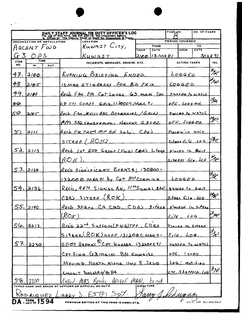 Document 11 f:/Week-33/BX000497/tactical operations center logs tf freedom 11-13 march 1991/daily staff journal 13 mar 91:09139616140461