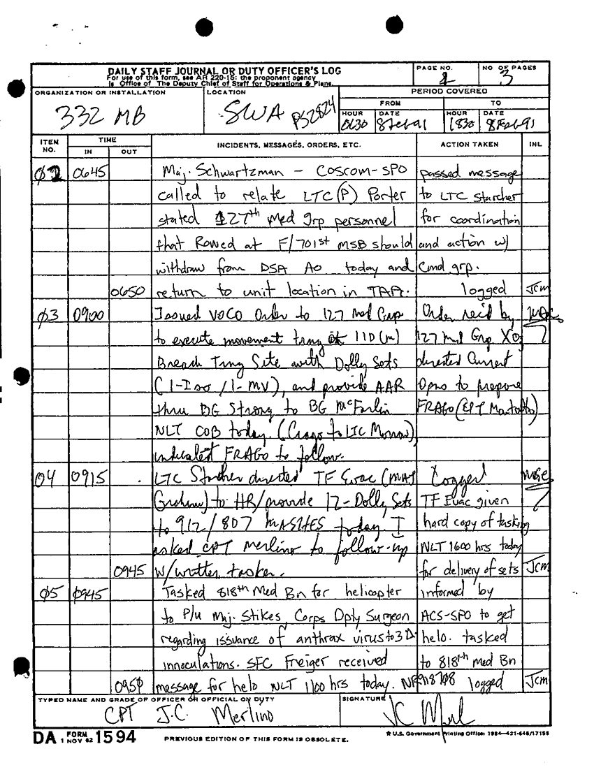 Document 9 f:/Week-34/BX005159/DA FORM 1594-DAILY STAFF JOURNAL OR DUTY OFFICERS LOG -1 FEB-21 FEB 91/daily staff journal or duty officer log:09139616141766