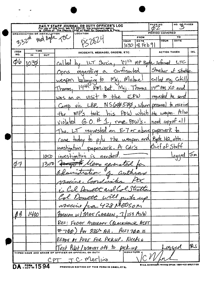 Document 9 f:/Week-34/BX005159/DA FORM 1594-DAILY STAFF JOURNAL OR DUTY OFFICERS LOG -1 FEB-21 FEB 91/daily staff journal or duty officer log:09139616141766