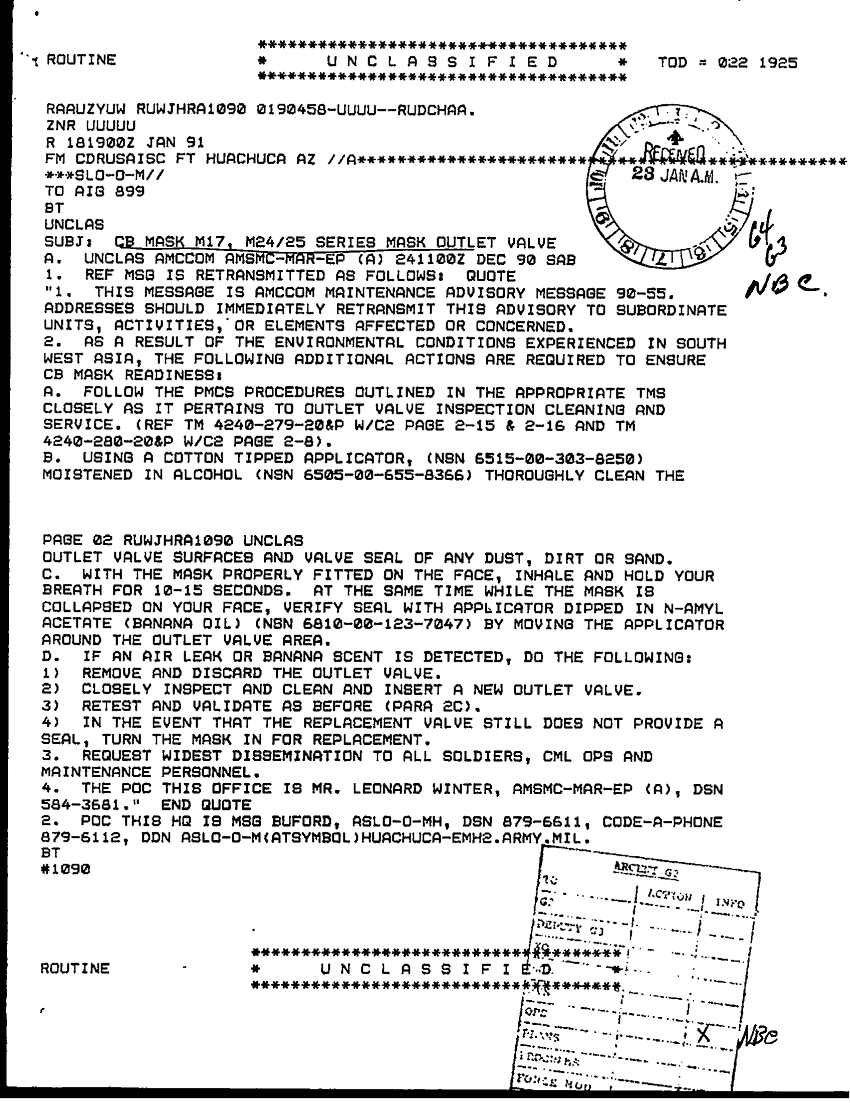 Document 2 f:/Week-32/BX000501/COMMAND REPORTS CINCCENT 21 AUG TO 22 SEP 90/cb mask m17 m24 25 series mask outlet valve 18 :09139616142971