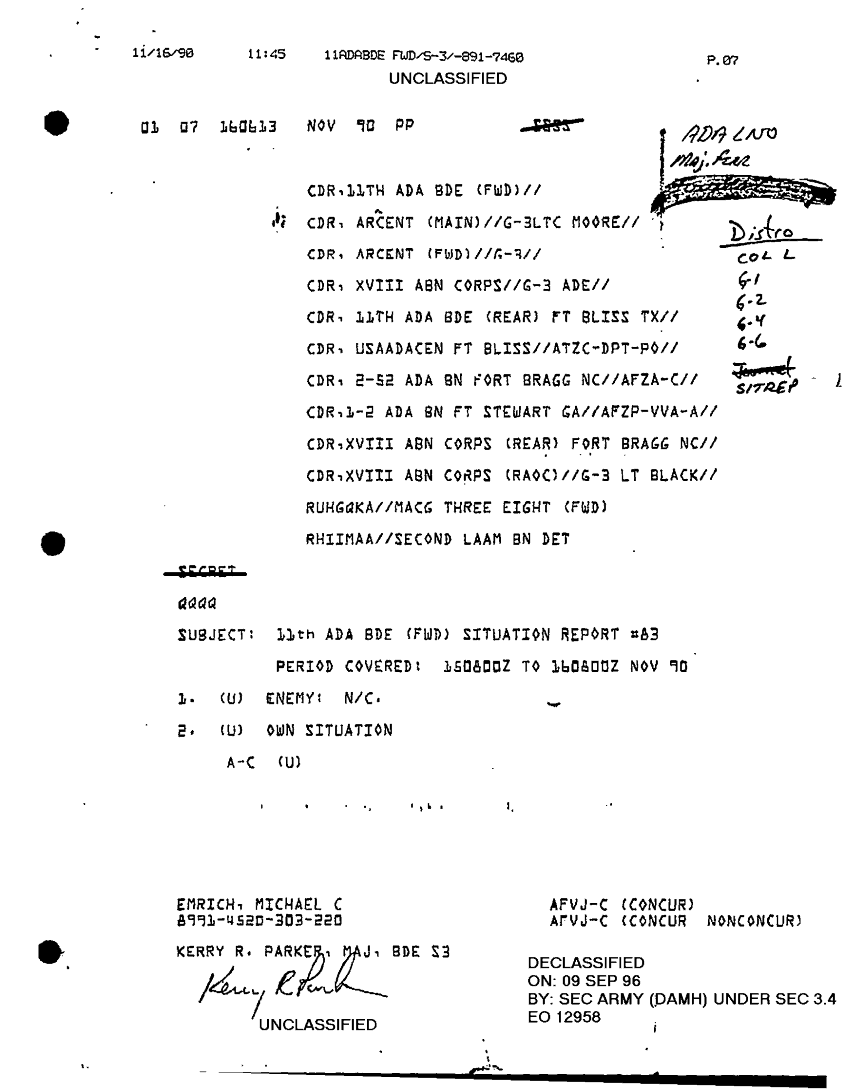 Document 7 f:/Week-32/BX000499/COMMAND REPORTS SITREPS 11TH ADA BDE 6 OCT 90-23 NOV 90/sitrep 11th ada no 83 15 to 16 nov 90:09139616144076