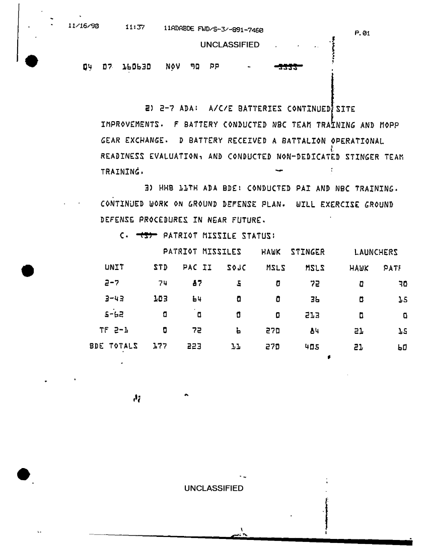 Document 7 f:/Week-32/BX000499/COMMAND REPORTS SITREPS 11TH ADA BDE 6 OCT 90-23 NOV 90/sitrep 11th ada no 83 15 to 16 nov 90:09139616144076