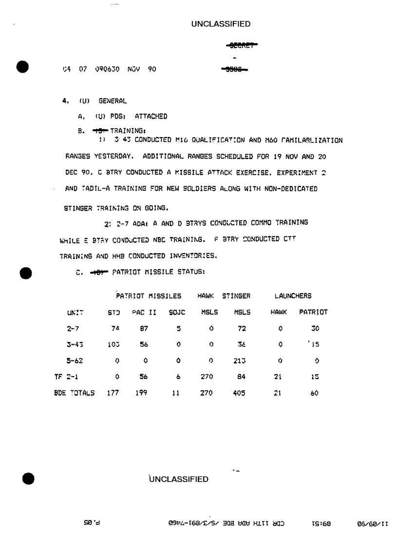 Folder Title = COMMAND REPORTS SITREPS 11TH ADA BDE 6 OCT 90-23 NOV 90