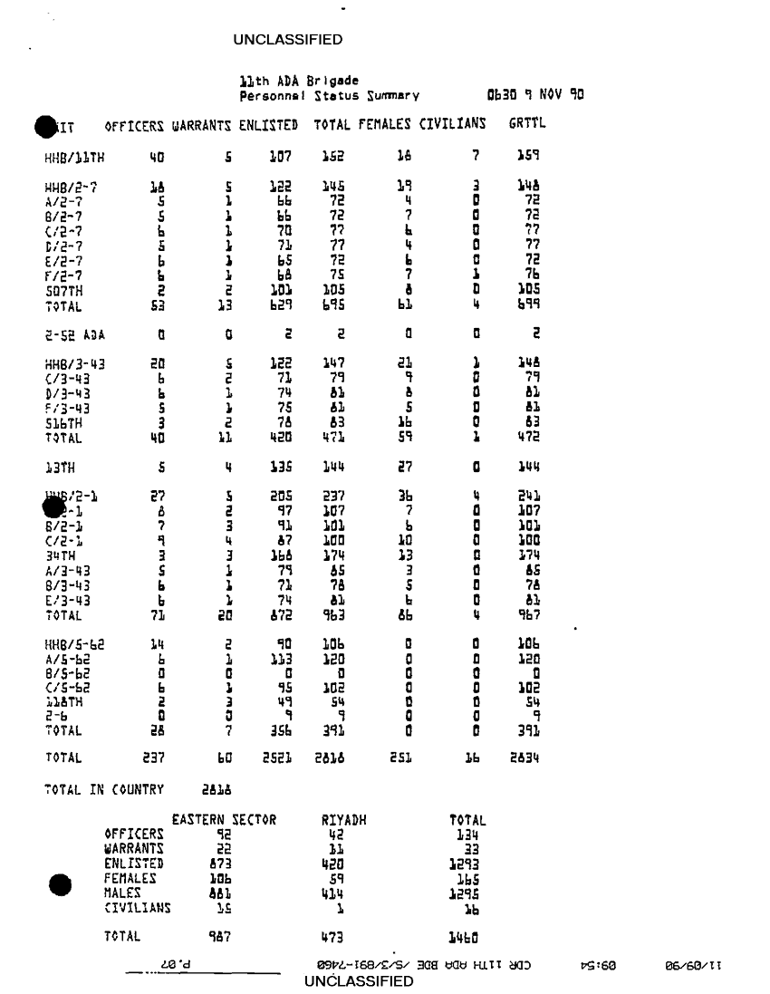 Folder Title = COMMAND REPORTS SITREPS 11TH ADA BDE 6 OCT 90-23 NOV 90