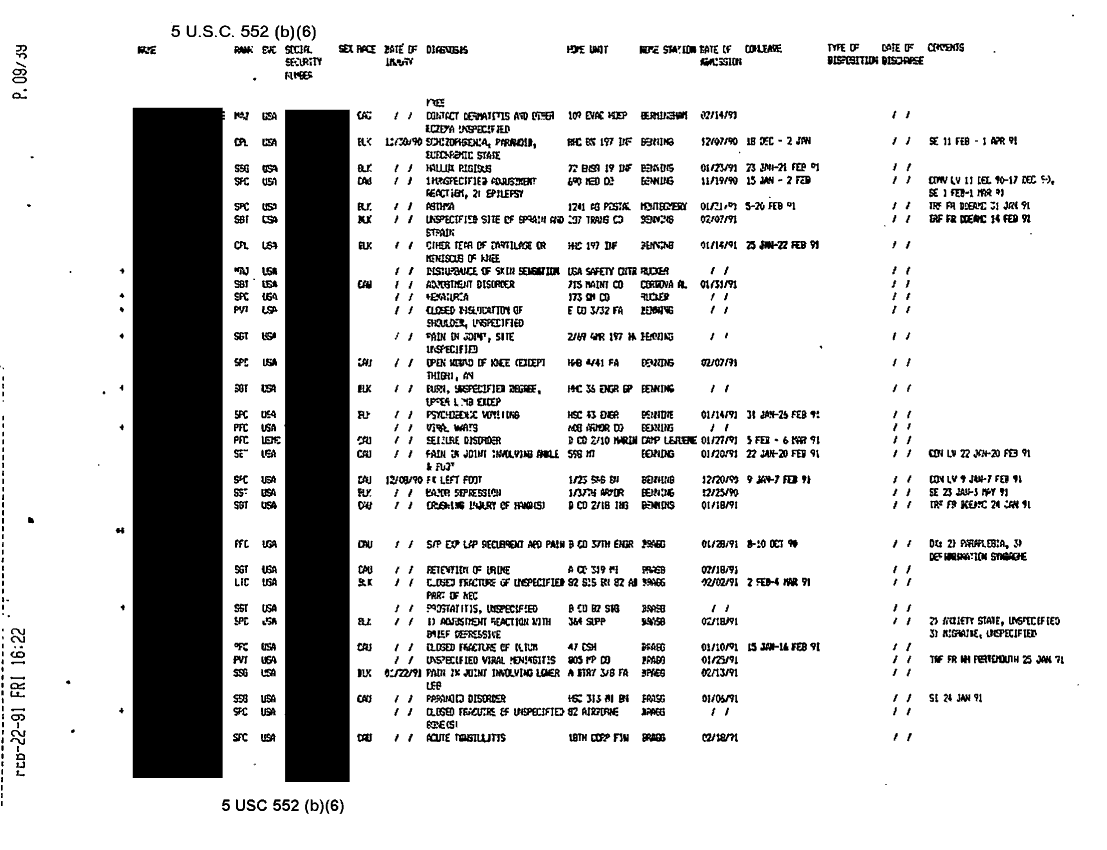 Document 38 f:/Week-31/BX000460/MEDSTAT-SITREPS - FEBRUARY - 2/ods patient status report 22feb91:09139616121511