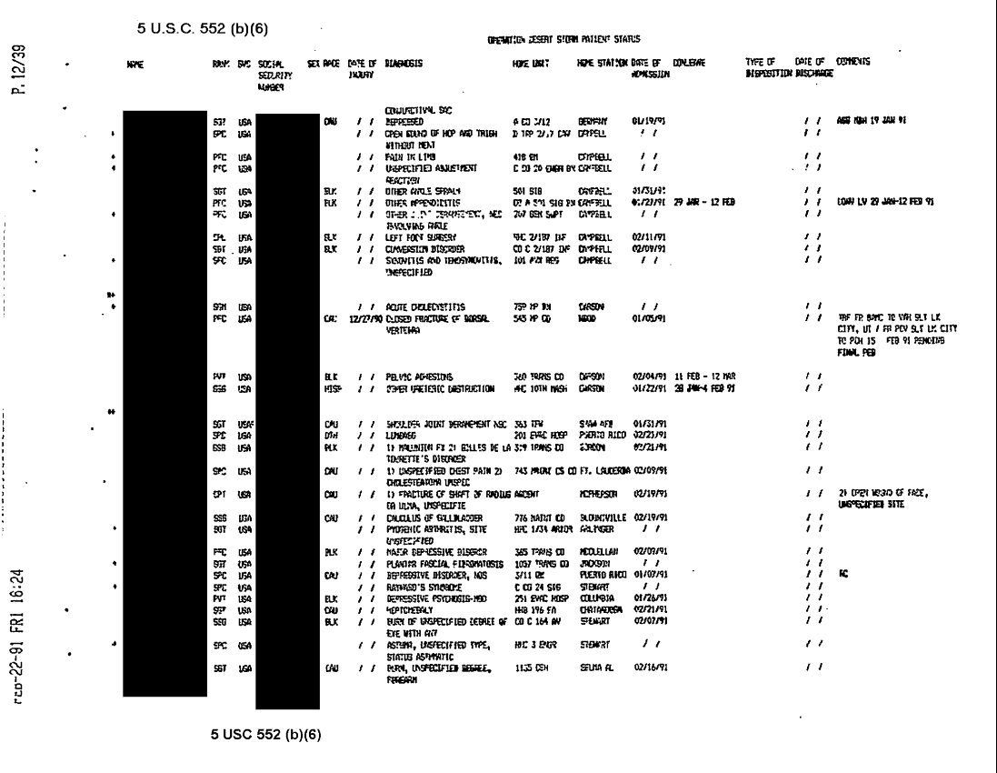 Document 38 f:/Week-31/BX000460/MEDSTAT-SITREPS - FEBRUARY - 2/ods patient status report 22feb91:09139616121511
