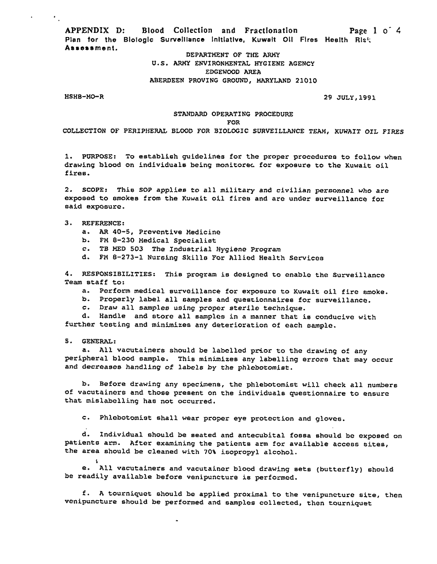 Document 4 f:/Week-34/BX005154/PREVENTIVE MEDICINE-ENVIRONMENTAL THREAT-USAEHA/appendix d sop collect of peripheral blood for :09139616151390