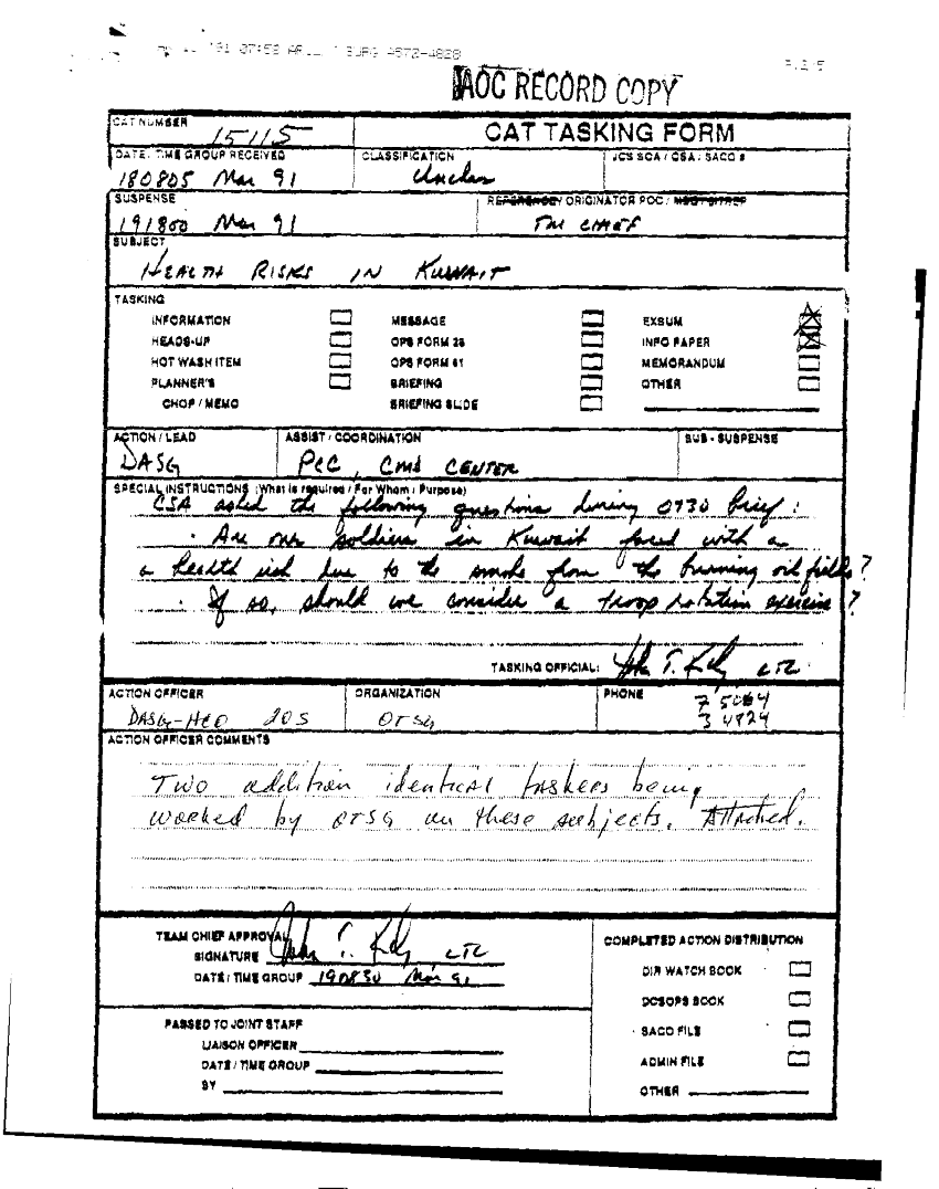 Subject = CAT TASKING HEALTH RISKS IN KUWAIT