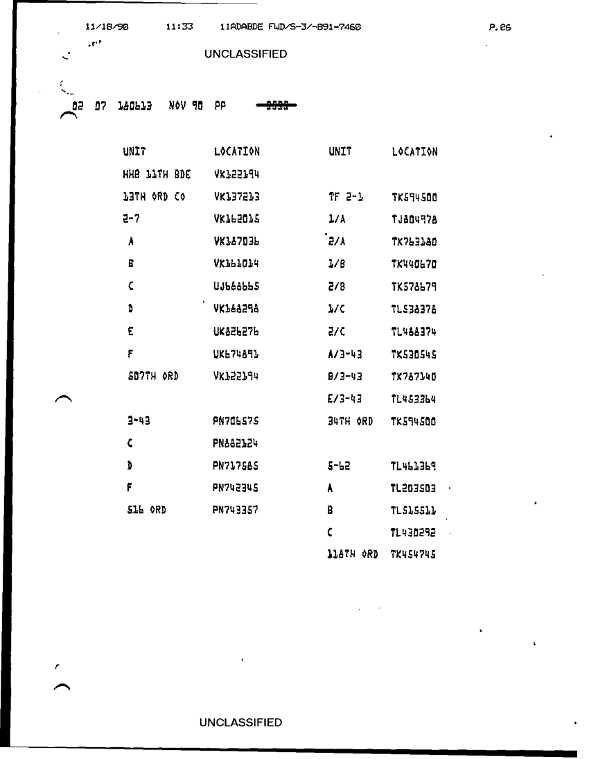 Document 7 f:/Week-32/BX000499/COMMAND REPORTS SITREPS 11TH ADA BDE 6 OCT 90-23 NOV 90/sitrep 11th ada no 85 17 to 18 nov 90:09139616152695
