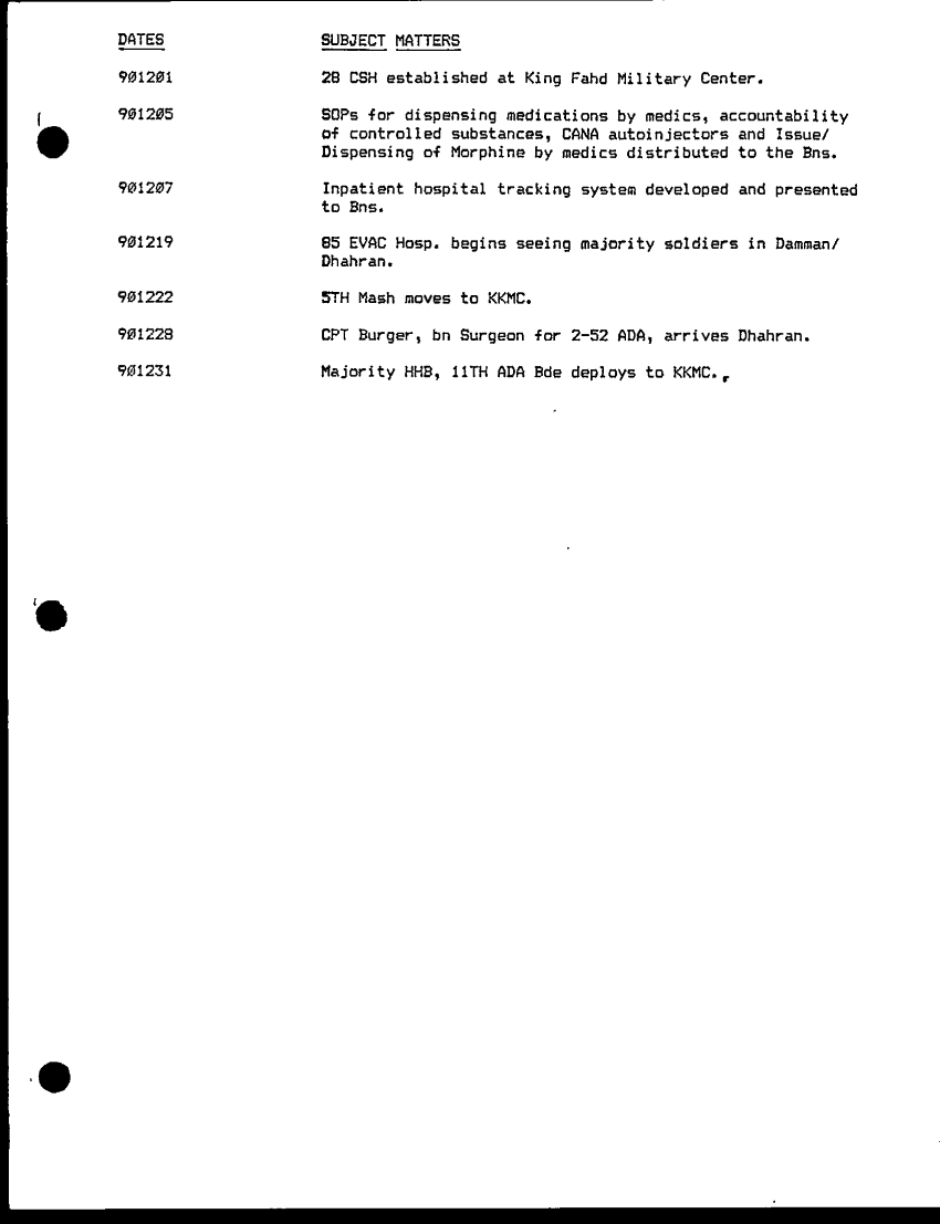 Document 8 f:/Week-33/BX000473/COMMAND REPORTS 11TH ADA BDE LESSONS LEARNED 1 OF 2 PERMANENT DESERT SHIELD-STORM/chronology of medical events for 11th ada bde:09139616123820
