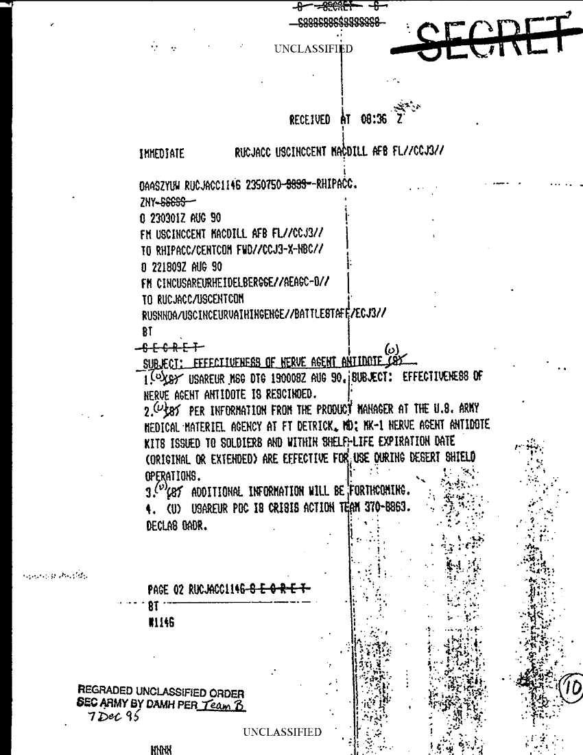 Document 1 f:/Week-29/BX000420/NBC MISCELLANEOUS INFORMATION/effectiveness of nerve agent antidote:09139616124926