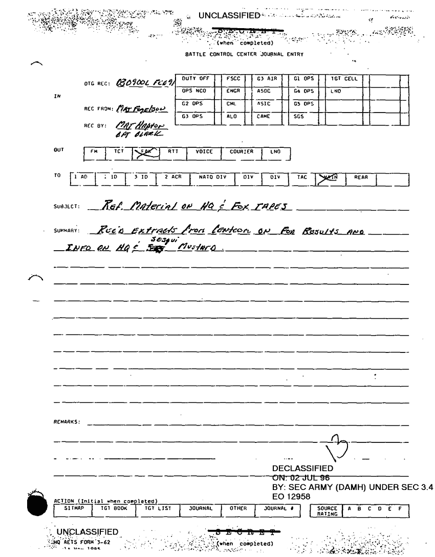 Subject = REF MATERIAL ON HQ FOX TAPES