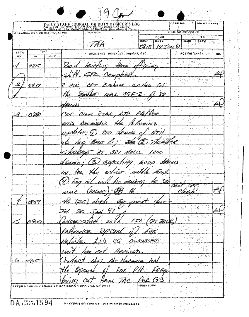 Folder Title = DAILY STAFF JOURNALS 19-27 JAN 91