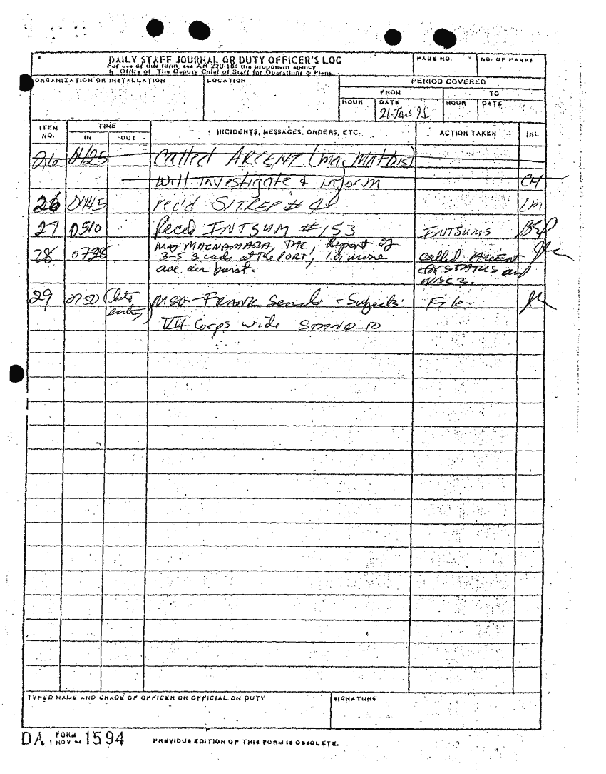Folder Title = DAILY STAFF JOURNALS 19-27 JAN 91