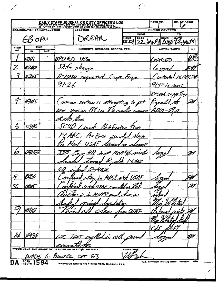 Document 6 f:/Week-22/BX001605/101ST ABN DIV AASLT DUTY LOG JAN 91-D/daily staff journal or duty officers log:0913961612119