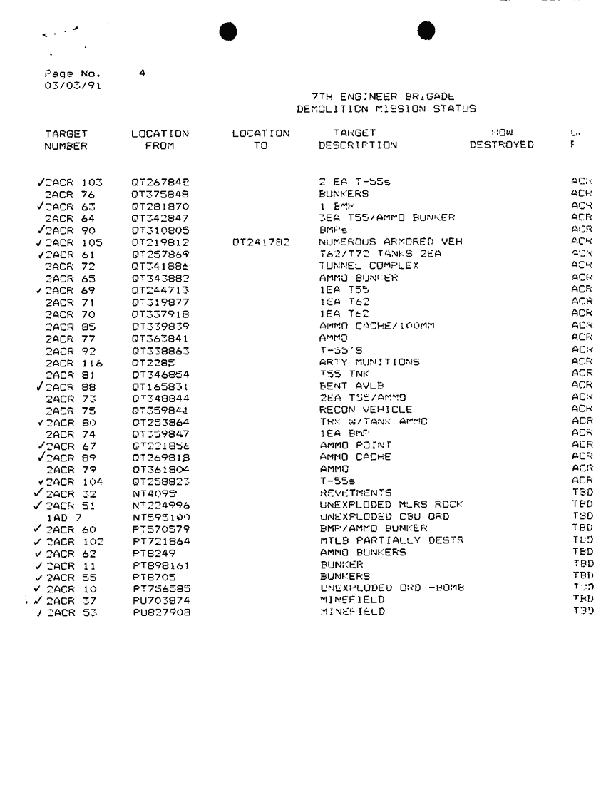 Document 17 f:/Week-25/BX000252/DAILY STAFF JOURNAL 2 MAR TO 15 MAR 1991 SITRREPS/7th engineer brigade demolition mission status:09139616131441