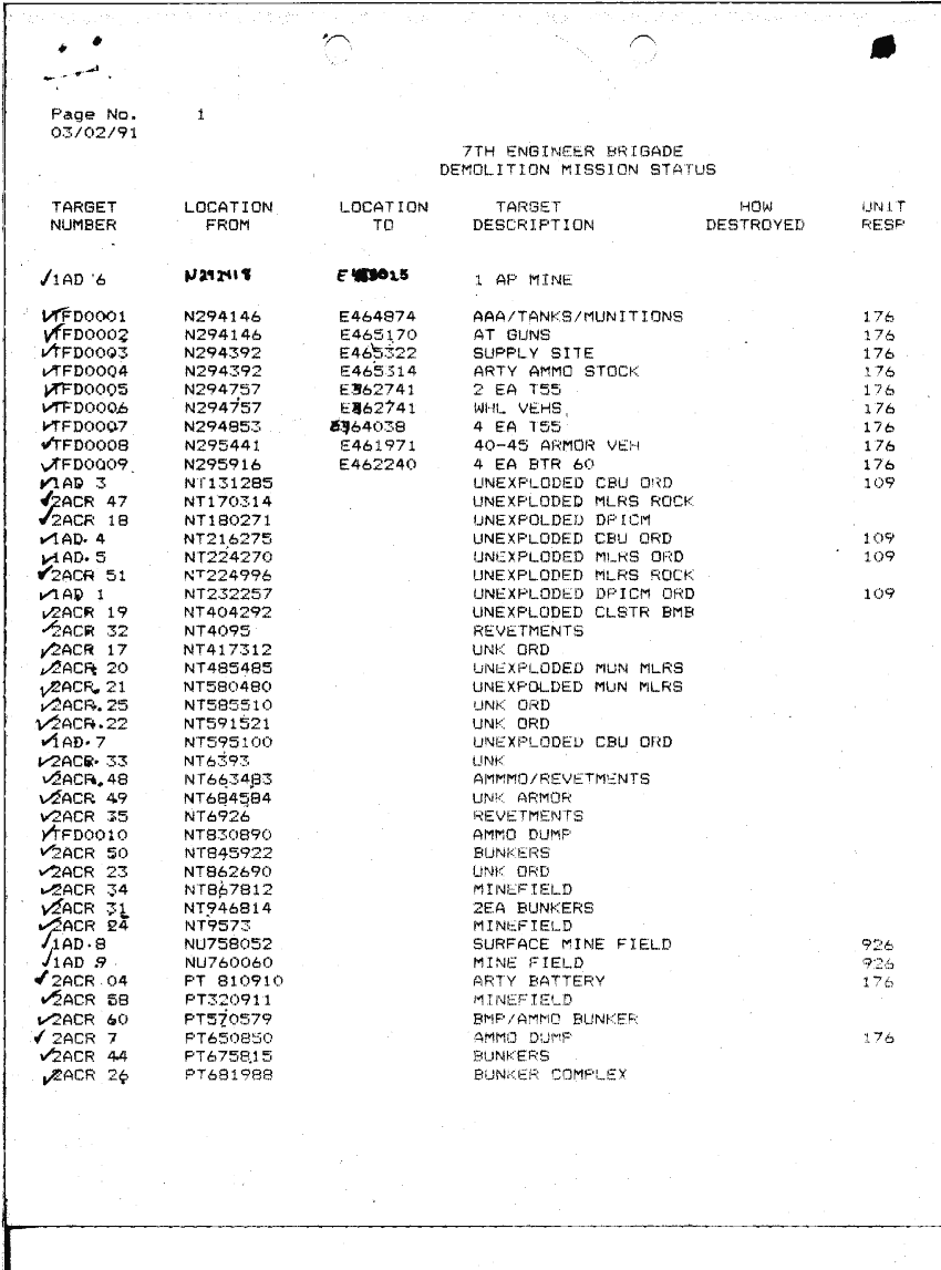 Document 17 f:/Week-25/BX000252/DAILY STAFF JOURNAL 2 MAR TO 15 MAR 1991 SITRREPS/7th engineer brigade demolition mission status:09139616131441