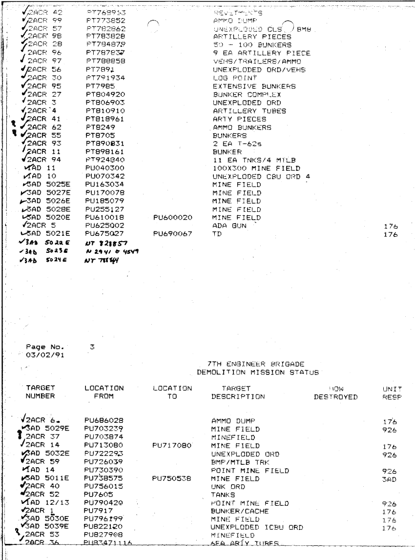 Document 17 f:/Week-25/BX000252/DAILY STAFF JOURNAL 2 MAR TO 15 MAR 1991 SITRREPS/7th engineer brigade demolition mission status:09139616131441