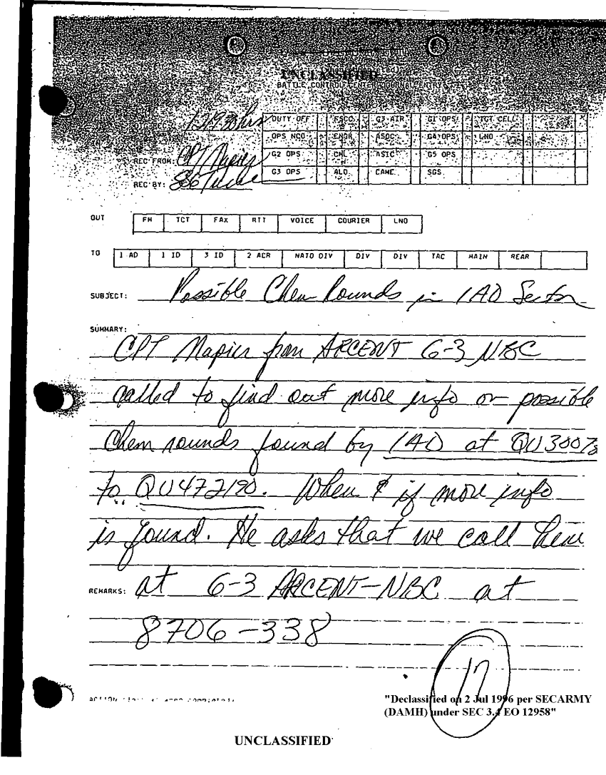 Document 1 f:/Week-25/BX000231/0007 CORPS CHEMICAL BOOK THREE/possible chem rounds in 1ad sector:09139616135357
