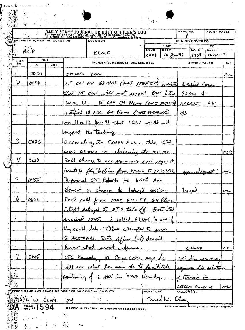 Document 3 f:/Week-10/BX000020/DUTY LOG G3 REAR CHIEF OF OPERATIONS DUTY LOG/daily staff journal or duty officers log 16 jan :09139616152193