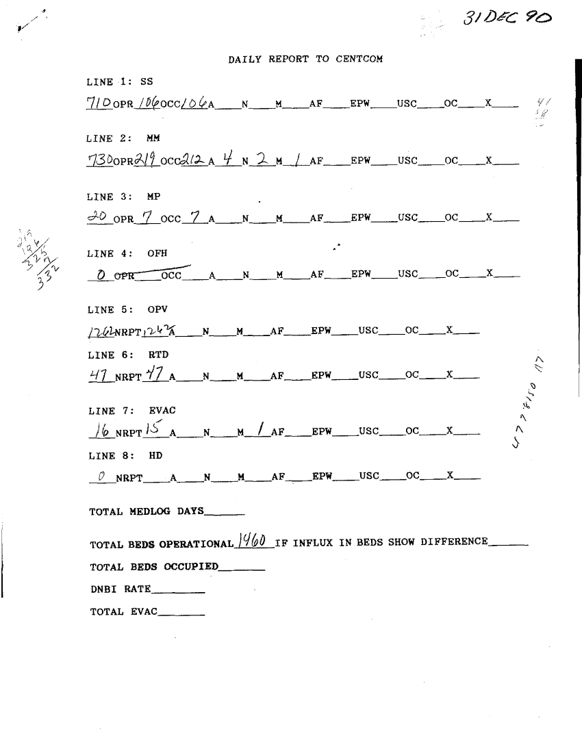Document 10 f:/Week-32/BX000482/MEDSTAT - SITREPS DEC 90 6 OF 6/daily report to centcom 31 dec 90:09069614064733